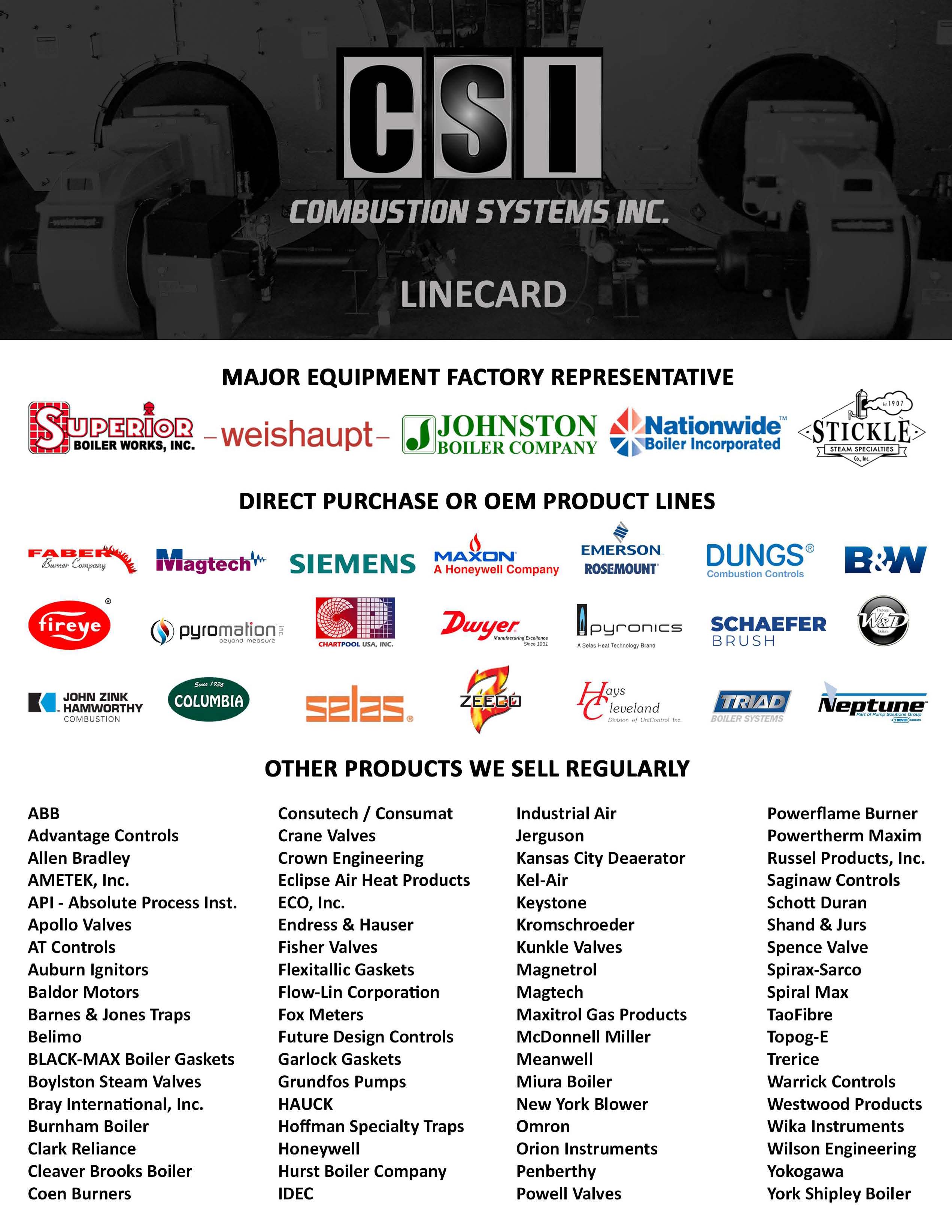 Manufacturer's representative specializing in sales and service of steam generating equipment and the associated ancillary equipment and controls. Products sold and serviced by CSI include:
